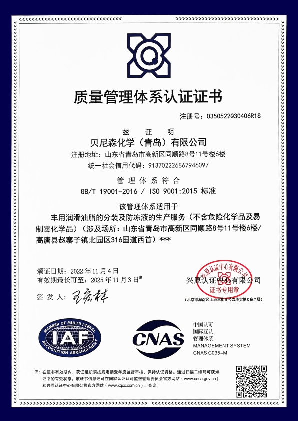 質(zhì)量管理體系認證證書